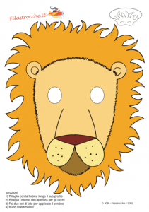 Ecco una bellissima maschera da leone! Stampala su un cartoncino bianco, ritagliala lungo il contorno, fai due buchi per gli occhi e applica un cordino o un elastico sul retro. Buon Carnevale da Filastrocche.it!!