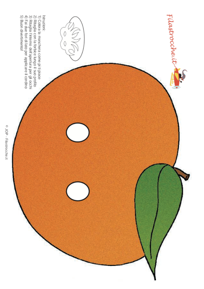 Ecco una bellissima maschera da mandarino! Stampala su un cartoncino bianco, ritagliala lungo il contorno, fai due buchi per gli occhi e applica un cordino o un elastico sul retro. Buon Carnevale da Filastrocche.it!!
