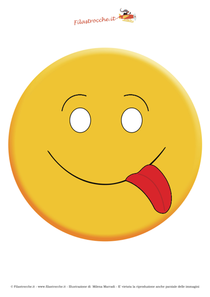 Se vi piacciono gli Emoticon (o Faccine o Smiley) usati in internet o nei SMS, ecco per voi un’originale maschera da Emoticon goloso, che potrete stampare su un cartoncino bianco. Ritagliatela lungo il contorno, fate due buchi per gli occhi e applicate un cordino o un elastico sul retro. Se preferite attaccate la maschera su un bastoncino che vi servirà per posizionarla davanti al viso. Buon Carnevale da Filastrocche.it!!