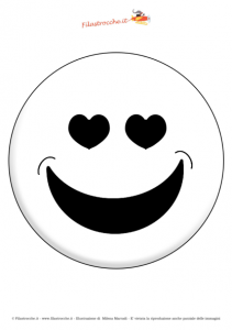 Se vi piacciono gli Emoticon (o Faccine o Smiley) usati in internet o nei SMS, ecco per voi un’originale maschera da Emoticon innamorato, che potrete stampare su un cartoncino bianco e colorare come preferite. Poi ritagliatela lungo il contorno, fate due buchi per gli occhi e applicate un cordino o un elastico sul retro. Se preferite attaccate la maschera su un bastoncino che vi servirà per posizionarla davanti al viso. Buon Carnevale da Filastrocche.it!!