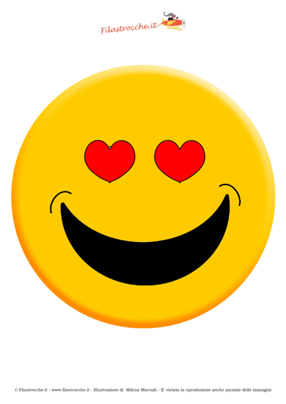 Se vi piacciono gli Emoticon (o Faccine o Smiley) usati in internet o nei SMS, ecco per voi un’originale maschera da Emoticon innamorato, che potrete stampare su un cartoncino bianco. Ritagliatela lungo il contorno, fate due buchi per gli occhi e applicate un cordino o un elastico sul retro. Se preferite attaccate la maschera su un bastoncino che vi servirà per posizionarla davanti al viso. Buon Carnevale da Filastrocche.it!!