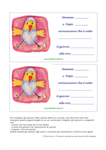 Da Filastrocche.it ecco un simpatico annuncio di nascita per la vostra cucciola! Stampate, compilate e inviate ad amici e parenti. Felicitazioni!