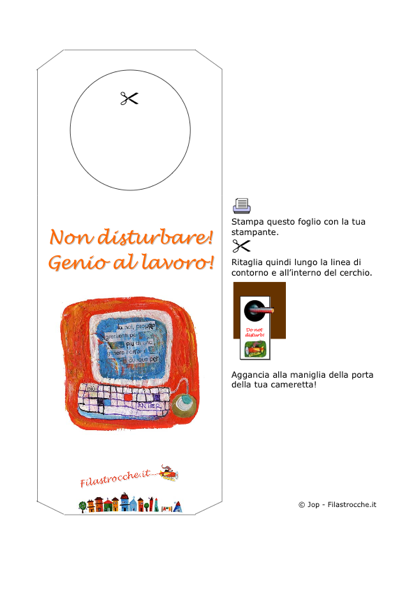 Da Filastrocche.it ecco il segnaporta “Non Disturbare! Genio al lavoro!”, da appendere alla porta della vostra cameretta