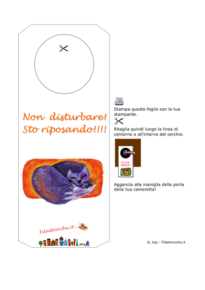 Da Filastrocche.it ecco il segnaporta “Non Disturbare! Sto riposando!”, da appendere alla porta della vostra cameretta