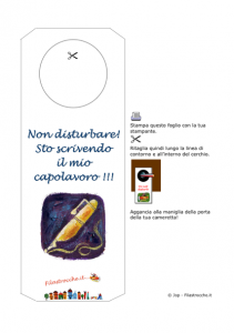 Da Filastrocche.it ecco il segnaporta “Non Disturbare! Sto scrivendo il mio capolavoro!”, da appendere alla porta della vostra cameretta