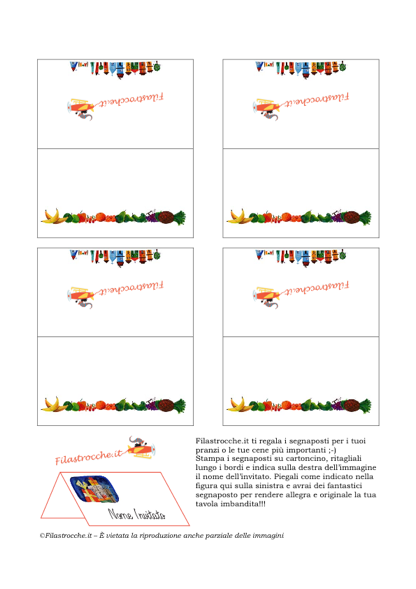 Filastrocche.it ti regala i segnaposto con la frutta, per rendere allegra e originale la tua tavola! Stampali su un cartoncino, ritagliali, piegali e scrivi il nome degli invitati