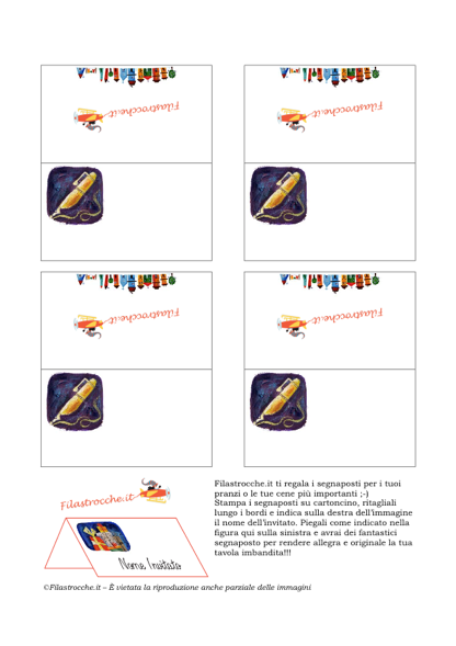 Filastrocche.it ti regala i segnaposto con la penna stilografica, per rendere allegra e originale la tua tavola! Stampali su un cartoncino, ritagliali, piegali e scrivi il nome degli invitati