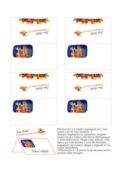 Filastrocche.it ti regala i segnaposto di Natale con i pacchetti regalo, per rendere allegra e originale la tua tavola nei giorni di fetsa! Stampali su un cartoncino, ritagliali, piegali e scrivi il nome degli invitati. Buone Feste!