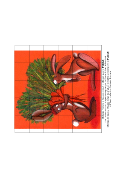 Mettete alla prova la vostra abilità durante la Festa di San Valentino e cercate di ricostruire il puzzle con i coniglietti! Stampate, ritagliate lungo la griglia, mescolate i pezzi e cercate di riscostruire la figura originale nel minor tempo possibile! Il puzzle, illustrato da Stefania Pravato, può anche essere un’originale idea regalo per la Festa degli Innamorati. Auguri!