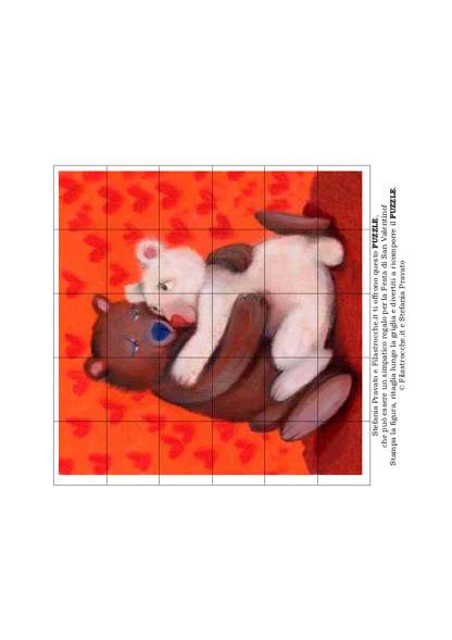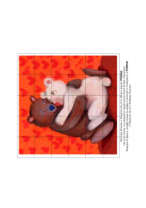 Mettete alla prova la vostra abilità durante la Festa di San Valentino e cercate di ricostruire il puzzle con gli orsetti! Stampate, ritagliate lungo la griglia, mescolate i pezzi e cercate di riscostruire la figura originale nel minor tempo possibile! Il puzzle, illustrato da Stefania Pravato, può anche essere un’originale idea regalo per la Festa degli Innamorati. Auguri!