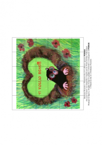 Mettete alla prova la vostra abilità durante la Festa di San Valentino e cercate di ricostruire il puzzle con la talpetta innamorata! Stampate, ritagliate lungo la griglia, mescolate i pezzi e cercate di riscostruire la figura originale nel minor tempo possibile! Il puzzle, illustrato da Stefania Pravato, può anche essere un’originale idea regalo per la Festa degli Innamorati. Auguri!