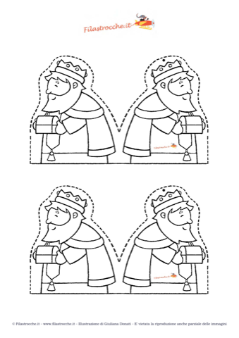 Giuliana Donati, in collaborazione con Filastrocche.it vi offre degli addobbi per l’Albero di Natale originali e creativi, da realizzare con carta, forbici, colori e un po’ di fantasia! Ecco Melchiorre, uno dei Tre Re Magi, da colorare come più vi piace, stampatelo, piegatelo e unite le due parti con un po’ di colla. Fate un foro in alto e fateci passare un nastrino colorato. Melchiorre è pronto per essere appeso al vostro Albero, ma può anche essere utilizzato come decorazione per abbellire la vostra casa nei giorni di festa. Buon Natale!