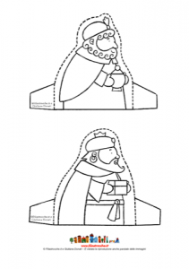 Giuliana Donati, in collaborazione con Filastrocche.it ti propone un bellissimo Presepe, da realizzare con carta, forbici, colori e un po’ di fantasia! Qui trovi i Tre Re Magi. Cerca anche gli altri personaggi – La Sacra Famiglia, il Pastore con le pecorelle, gli Angioletti e la stella cometa – e il fondale e realizza il tuo originale Presepe. Procurati una cartelletta A4 e fissa con una catenina di perline il lato che si apre con il lato interno. Decora l’interno con colla e polvere dorata, fai la stradina e la stella cometa con carta dorata; procurati un piccolo steccato, le gocce di vetro, il muschio e una palma e incolla delle stelline adesive nel cielo. Poi stampa i personaggi – meglio su cartoncino – e disponili nel Presepe. Bello vero? E anche pratico, perché si può richiudere nella cartelletta e portarselo in vacanza e poi riporlo in libreria fino al prossimo Natale! Scatena la fantasia e auguri di Buon Natale!