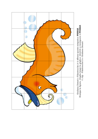 Per trascorrere in allegria le giornate di vacanza, mettete alla prova la vostra abilità e cercate di ricostruire il puzzle vacanziero con il cavalluccio marino, illustrato da Giuliana Donati! Stampate, ritagliate lungo la griglia, mescolate i pezzi e cercate di riscostruire la figura originale nel minor tempo possibile! Buon divertimento!