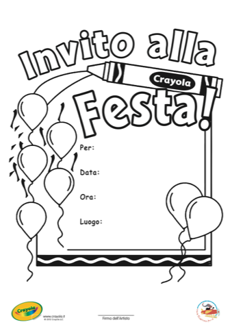 Filastrocche.it e Crayola vi regalano l’originale biglietto di invito per le tue Feste con i palloncini. Stampate il file su un cartoncino, per farlo durare più a lungo, ritagliate l’invito e compilatelo con il vostro nome, il nome dell’invitato e le informazioni su dove e quando si svolgerà la festa. E scatenate al vostra fantasia per decorare e abbellirlo Gli inviti sono pronti per essere consegnati! Buon Divertimento!