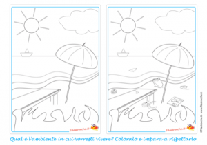 Qual è l’ambiente in cui vorresti vivere? Coloralo e impara a rispettarlo! Attraverso questi disegni puoi insegnare ai bambini la differenza fra un mondo “pulito” e un mondo “sporco”. Mostrate loro le differenze fra le due parti e chiedete ai bambini dove preferirebbero vivere. Fate poi colorare l’ambiente pulito, spiegando che potrà rimanere così solo con l’impegno di tutti!