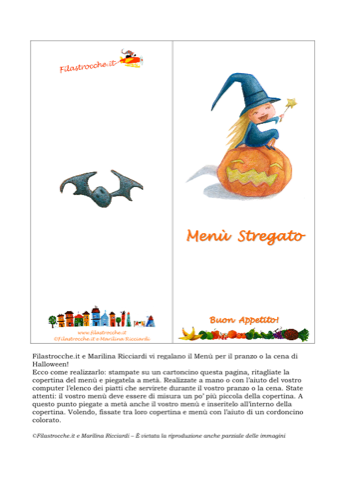Per rendere terrificante il pranzo o la cena di Halloween, ecco il menù di Filastrocche.it con una bellissima illustrazione creata apposta per voi da Marilina Ricciardi! Stampatelo su un cartoncino e ritagliatelo: è pronto per essere posizionato sulla vostra tavola!