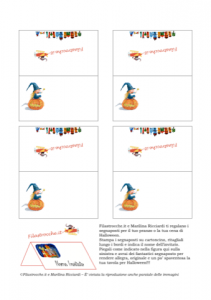 Filastrocche.it e Marilina Ricciardi ti regalano i segnaposti per il tuo pranzo o la tua cena di Halloween. Stampa i segnaposti su cartoncino, ritagliali lungo i bordi e indica sulla destra dell’immagine il nome dell’invitato. Piegali e avrai dei fantastici segnaposto per rendere allegra, originale e un po’ spaventosa la tua tavola per Halloween!!!