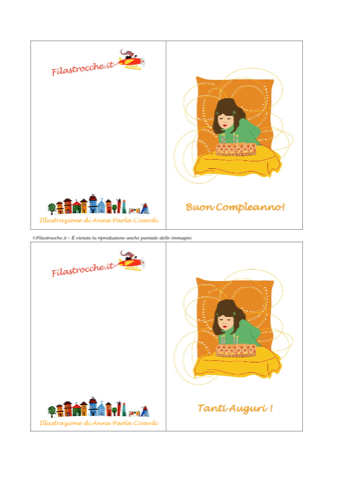 Un bellissimo biglietto d’auguri per festeggiare il Compleanno conl’originale illustrazione di Anna Paola Civardi. Tanti auguri da Filastrocche.it!