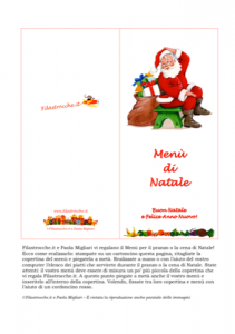 Per il pranzo o la cena di Natale con amici e parenti, ecco il menù di Filastrocche.it con la splendida illustrazione di Paola Migliari. Stampatelo su un cartoncino, ritagliatelo e decoratelo con un nastrino colorato. La vostra tavola sarà bella e raffinata! Tanti auguri di Buon Natale!