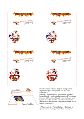 Filastrocche.it e Paola Migliari ti regalano i segnaposto di Natale, per rendere allegra e originale la tua tavola nei giorni di fetsa! Stampali su un cartoncino, ritagliali, piegali e scrivi il nome degli invitati. Buone Feste!