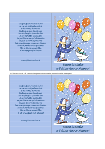 Filastrocche.it e Giulia Orecchia vi regalano l’originale biglietto d’auguri con il pinguino e i palloncini per la Festa più bella dell’anno. Tanti auguri di Buon Natale e Felice Anno Nuovo!
