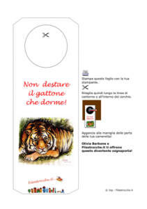 Olivia Barbone e Filastrocche.it vi offrono il divertente segnaporta “Non destare il gattone che dorme!”, da appendere alla porta della vostra cameretta!