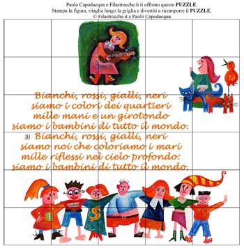 Paolo Capodacqua in collaborazione con Filastrocche.it vi offre un simpatico puzzle con il testo di una delle sue più famose canzoni: Bianchi rossi gialli neri.