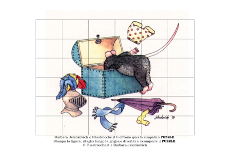 Mettete alla prova la vostra abilità e cercate di ricostruire il puzzle disegnato da Barbara Jelenkovich! Stampate, ritagliate lungo la griglia, mescolate i pezzi e cercate di riscostruire la figura originale nel minor tempo possibile! Buon divertimento!