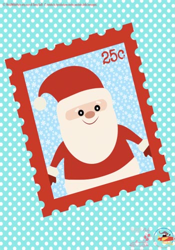 Decorazioni per Natale: Poster con francobollo di Babbo Natale. Poster A4 dedicato al Natale da incorniciare in semplici e leggere cornici oppure da usare stampato su cartoncino. Si può appendere al muro, sulla porta di casa, sulle finestre, agli stipiti delle porte… Per rendere l’ambiente caldo e allegro come si addice al Natale!
