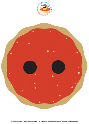 Se desideri la maschera da pizza in bianco e nero, da colorare a piacere, clicca qui.