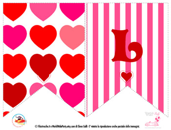 Stampate il file pdf del festone, poi ritagliate le bandierine e attaccatele ad un filo. Appendete il festone LOVE sul muro, sullo stipite della porta, dove volete!