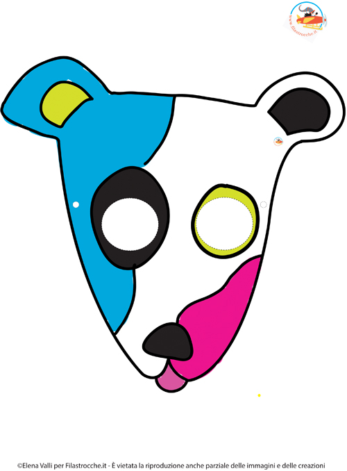 Stampatela, meglio se su cartoncino rigido. Ritagliate lungo il contorno e all’interno degli occhi.