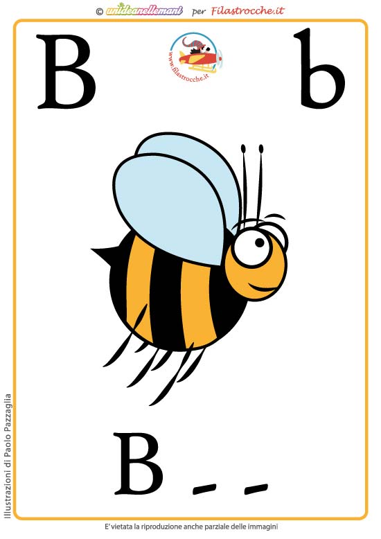 - Lettera B come Bee a colori senza la scritta (per verificare se hanno imparato la parola)