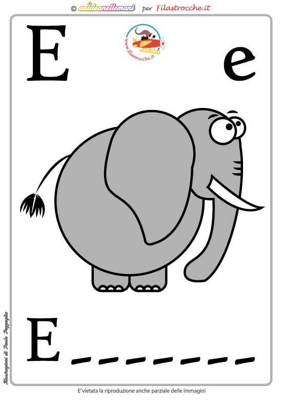 - Lettera E come Elephant a colori senza la scritta (per verificare se hanno imparato la parola)