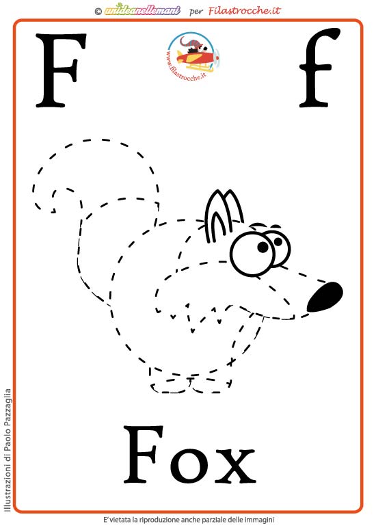 In questa pagina trovate la Lettera F come Fox nella versione “Unisci i puntini”.