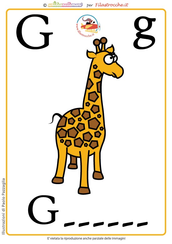 - Lettera G come Giraffe a colori senza la scritta (per verificare se hanno imparato la parola)