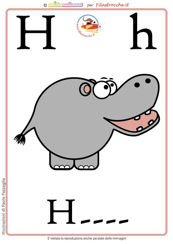- Lettera H come Hippo a colori senza la scritta (per verificare se hanno imparato la parola)