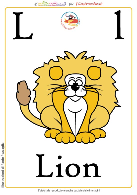 - Lettera L come Lion a colori senza la scritta (per verificare se hanno imparato la parola)