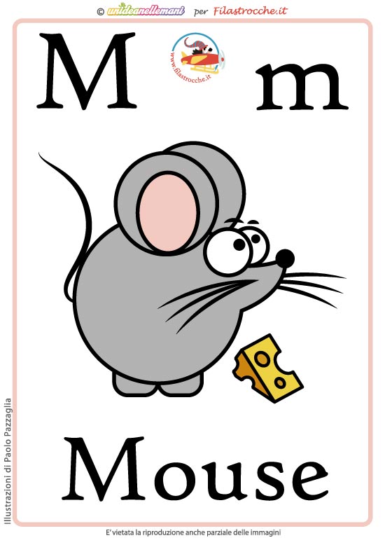 - Lettera M come Mouse a colori senza la scritta (per verificare se hanno imparato la parola)
