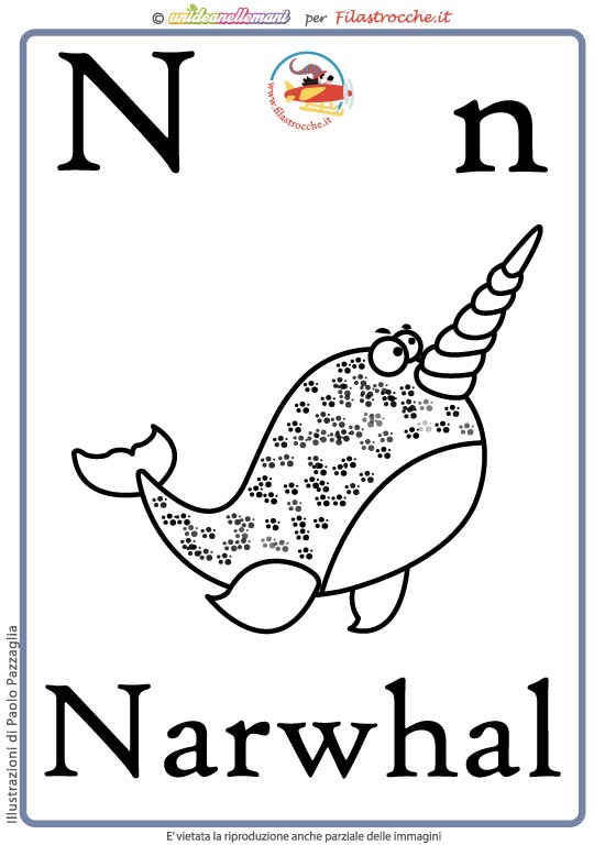 - Lettera N come Narwhal a colori senza la scritta (per verificare se hanno imparato la parola)