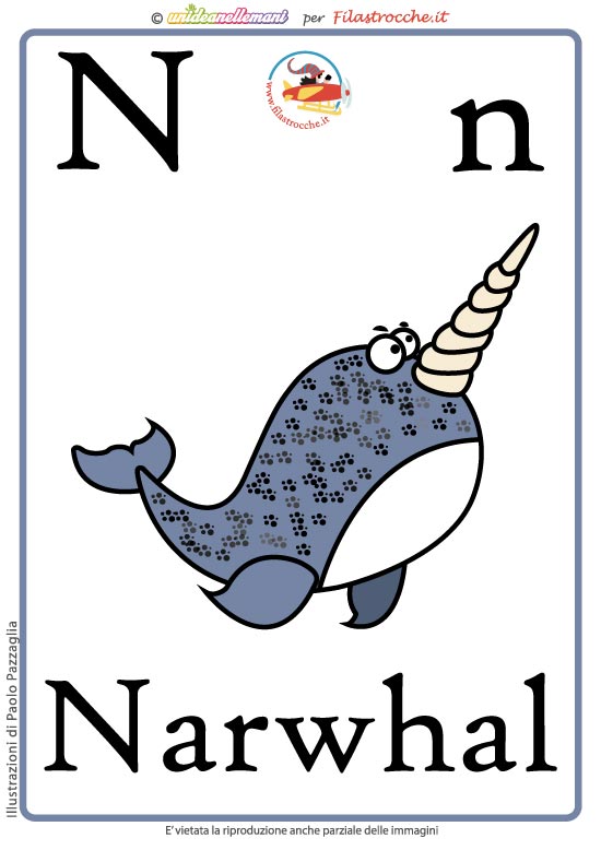 - Lettera N come Narwhal a colori senza la scritta (per verificare se hanno imparato la parola)