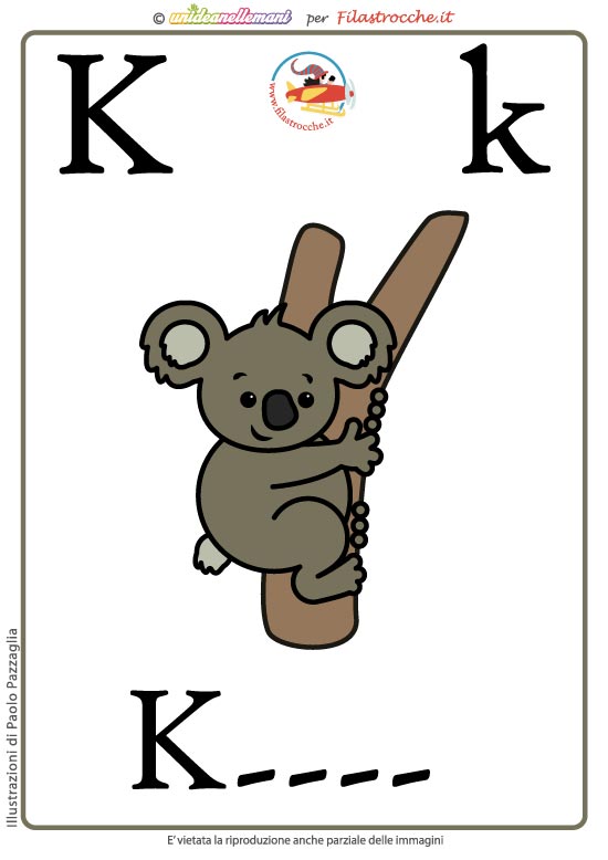 In questa pagina trovate la verifica per la Lettera K come Koala.
