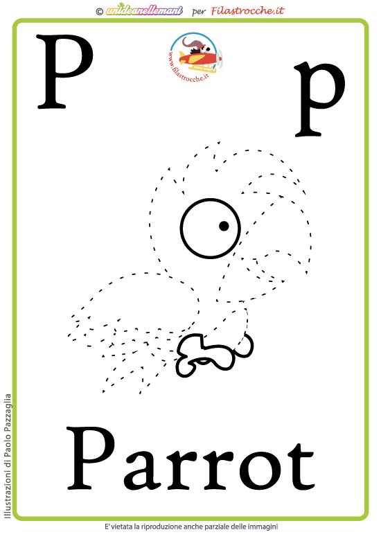 - Lettera P come Parrot a colori senza la scritta (per verificare se hanno imparato la parola)