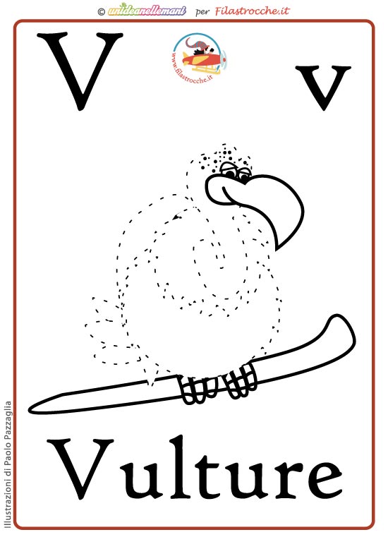 - Lettera V come Vulture a colori senza la scritta (per verificare se hanno imparato la parola)