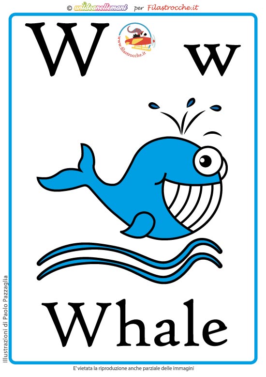 - Lettera W come Whale a colori senza la scritta (per verificare se hanno imparato la parola)