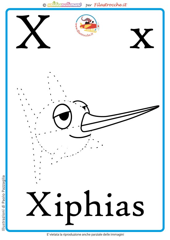 - Lettera X come Xiphias a colori senza la scritta (per verificare se hanno imparato la parola)