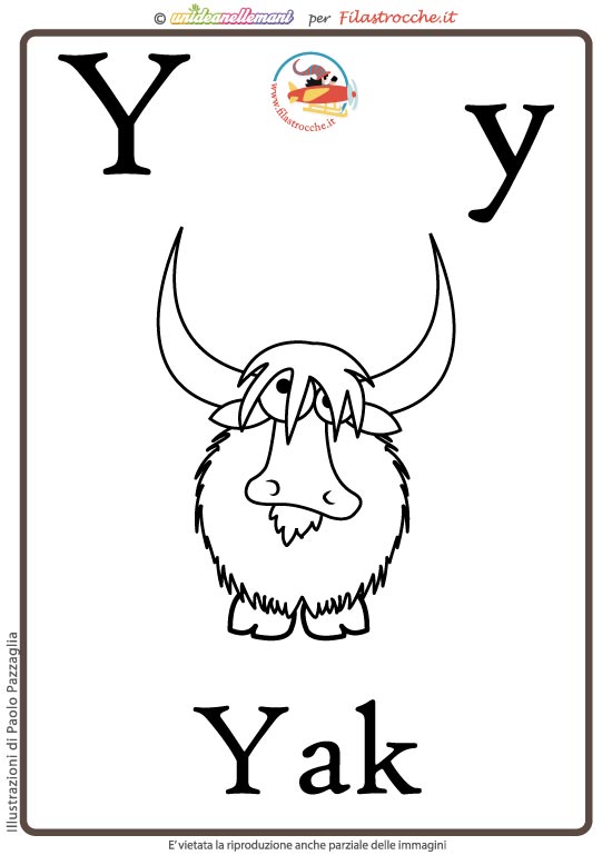 - Lettera Y come Yak a colori senza la scritta (per verificare se hanno imparato la parola)