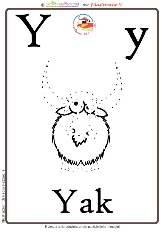 - Lettera Y come Yak a colori senza la scritta (per verificare se hanno imparato la parola)
