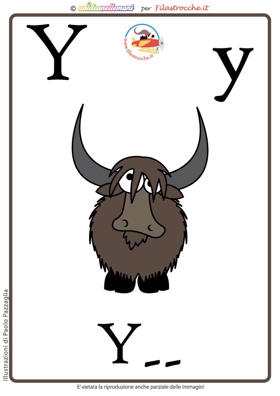 - Lettera Y come Yak a colori senza la scritta (per verificare se hanno imparato la parola)